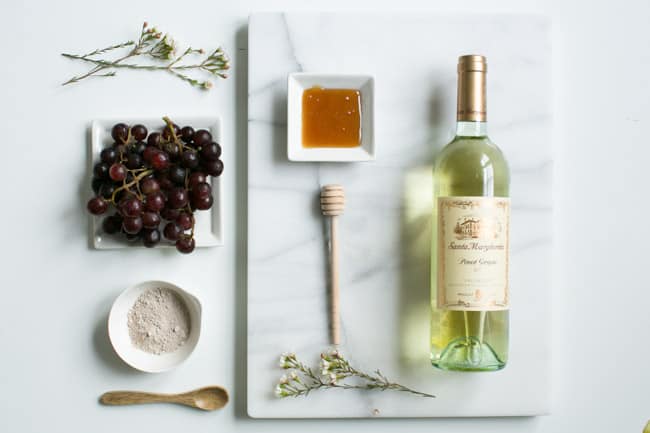 Resveratrol, một chất chống oxy hóa mạnh được tìm thấy trong vỏ của nho đỏ và rượu vang, là một thành phần chống lão hóa mạnh. Chất chống oxy hóa không chỉ giúp sửa chữa tác hại của tia UV và chất ô nhiễm (những thứ đáng yêu làm lão hóa làn da của chúng ta) mà nó còn giúp tế bào của bạn sản xuất nhiều chất chống oxy hóa tự nhiên hơn. Điều đó có nghĩa là nó có thể quét sạch nhiều gốc tự do hơn. Kết hợp nó với đất sét, hoạt động giống như một nam châm hút các tạp chất và sữa chua để tẩy tế bào chết và hydrat hóa. Trộn đất sét, mật ong và rượu với nhau trong một cái bát, không nên dùng kim loại. Ép một vài quả nho để thêm nước trái cây tươi vào hỗn hợp.