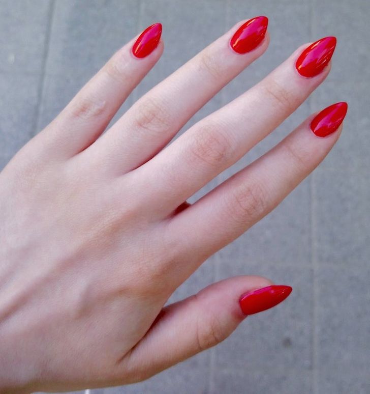 Móng tay màu đỏ cho thấy bạn là người đam mê. Bạn cũng có thể hơi hung hăng và dễ xúc động. Nó cũng là một màu đậm, có nghĩa là bạn thích thể hiện sự tự tin hoặc thống trị. Bạn không ngại trở nên quyến rũ và thu hút mọi ánh nhìn.